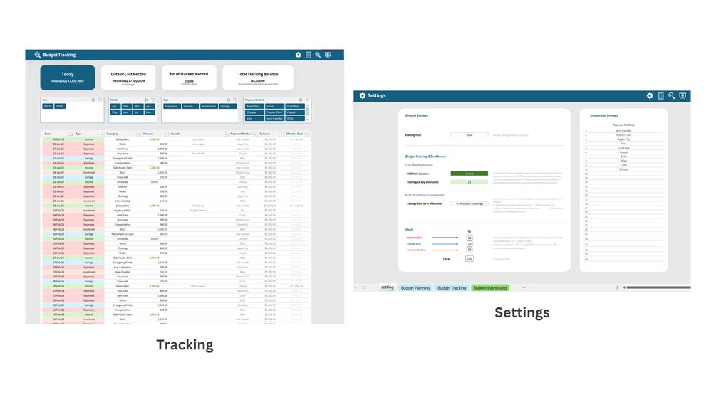 Budget Tracking Tab: This is where actual spending are been tracked.